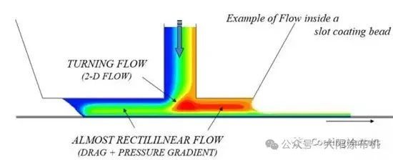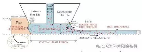 Slot Die涂布工藝中流體會涉及到壓力,粘彈力,慣性力,表面張力等,在各種力的作用下,整個流體系統(tǒng)達(dá)到一平衡,形成穩(wěn)定的涂布過程。