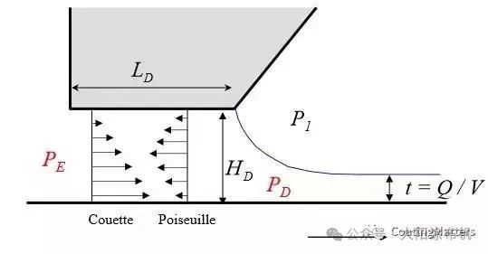 我一直認(rèn)為模頭涂布過程中的流體模型是一個比較復(fù)雜的模型,因為它涉及到比較多的不同界面的分析。如下圖:
