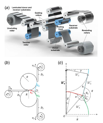 單個跨段中黏彈性卷材的行為可以用彈性模型來描述,但在多跨段系統(tǒng)中,這種預測與實際情況存在顯著差異。因此,大型、高精度的R2R系統(tǒng)中多跨段黏彈性至關重要。例如,在R2R干法轉移系統(tǒng)中,黏彈性可能導致薄膜剝離過程中的粘滑現(xiàn)象,給控制設計帶來巨大挑戰(zhàn)。因此,在高級應用中必須充分考慮黏彈性效應。05