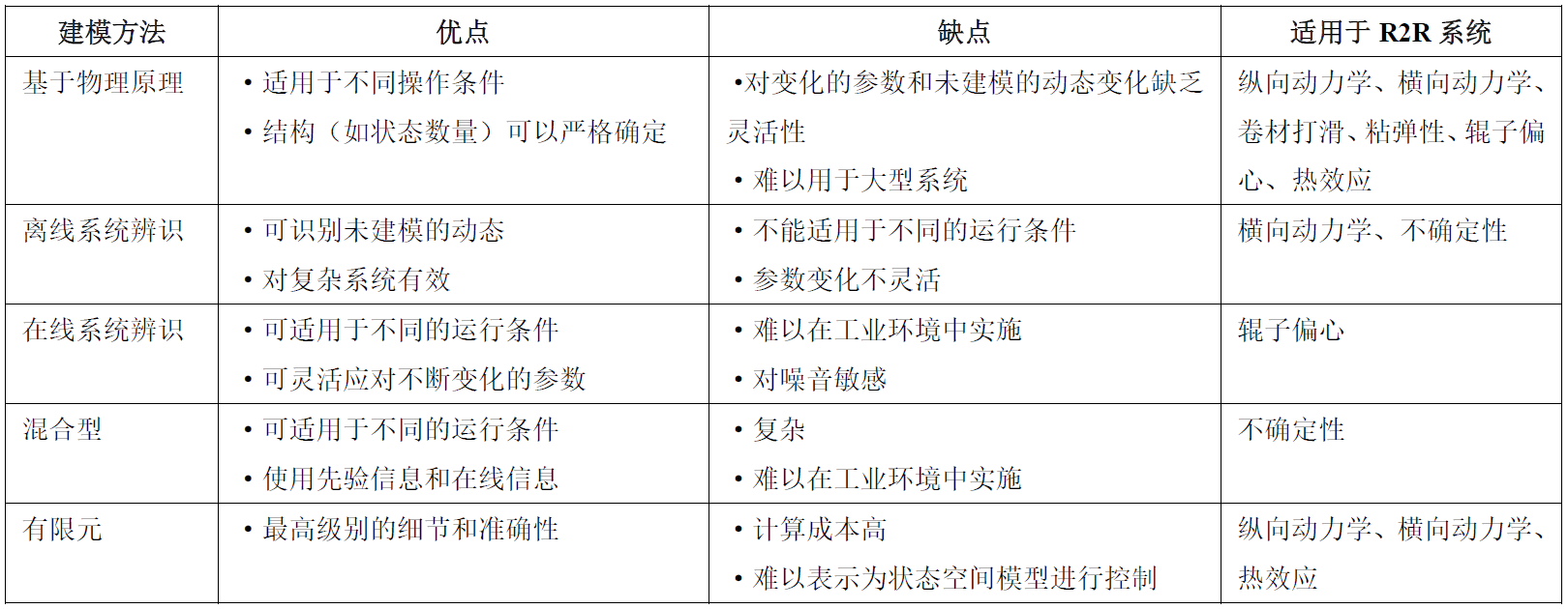 表1 R2R系統(tǒng)常用建模方法及其特點