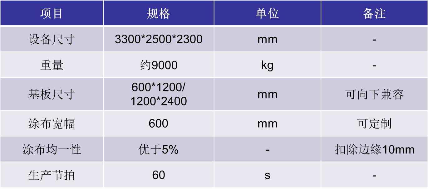 量產(chǎn)型鈣鈦礦涂布機技術(shù)規(guī)格