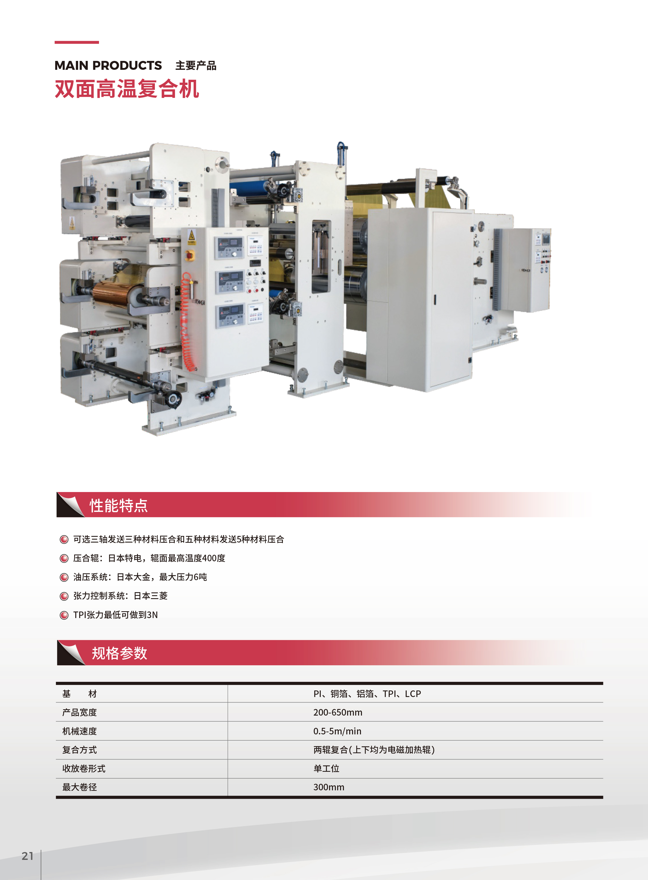 壓合輥:日本特電,輥面最高溫度400度
